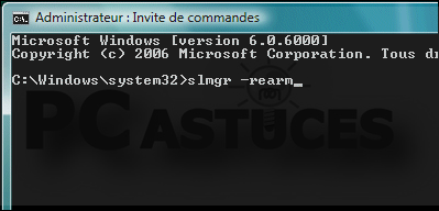 - Dans la fenêtre qui s'ouvre, saisissez la commande slmgr -rearm puis pressez la touche Entrée.